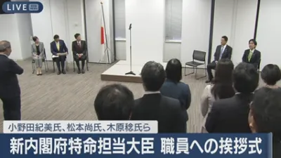 【ライブ】小野田紀美氏、松本尚氏、木原稔氏ら新内閣府特命担当大臣 職員への挨拶式【LIVE】(2025年10月23日) ANN/テレ朝