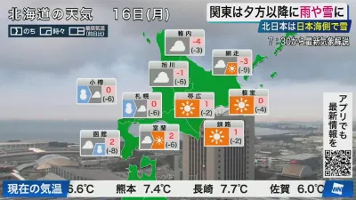 【ライブ】最新天気ニュース・地震情報 2026年2月16日(月)/北日本は冬の天気に戻る 関東は夜に雨や雪<ウェザーニュースLiVEモーニング・田辺真南葉/山口剛央〉