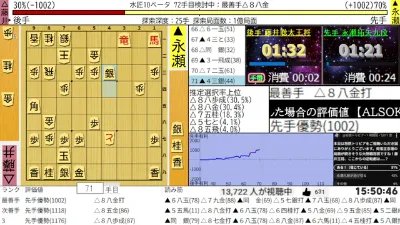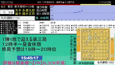 藤井聡太王将ー永瀬拓矢九段 ALSOK杯第75期王将戦七番勝負第三局 アユムの評価値放送