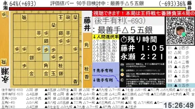 【元奨の将棋LIVE】藤井聡太王将 vs 永瀬拓矢九段【第75期王将戦七番勝負第4局2日目】
