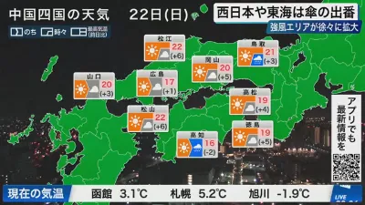 【ライブ】最新天気ニュース・地震情報 2026年2月22日(日) 1:00〜/西日本や東海は雨に注意 季節先取りの暖かさに〈ウェザーニュースLiVE〉