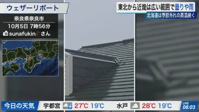 【ライブ】最新天気ニュース・地震情報 2025年10月5日(日)/東北~近畿は傘の出番 北海道は季節外れの高温〈ウェザーニュースLiVEサンシャイン・魚住茉由/山口剛央〉