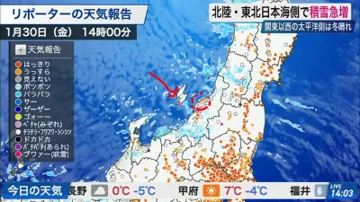 【ライブ】最新天気ニュース・地震情報 2026年1月30日(金) /北陸や東北日本海側で積雪急増に警戒 関東は昼間も真冬の寒さ〈ウェザーニュースLiVEアフタヌーン・小川千奈/宇野沢達也〉