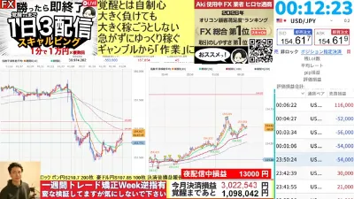 FXライブ】ドル円急反発154円!1分1万円×複数回で20万円夜配信中に稼げ!ガチスキャ配信一日3回継続中