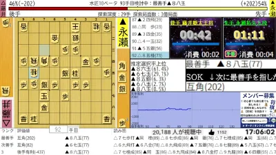 藤井聡太王将ー永瀬拓矢九段 ALSOK杯第75期王将戦第1局 アユムの評価値放送
