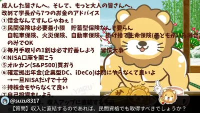 【家計管理&収入アップライブ】成人した皆さんへ。そして、もっと大人の皆さんへ、改めて学長から7つのお金のアドバイス【1月12日8時30分まで】