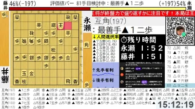 藤井聡太王将ー永瀬拓矢九段 ALSOK杯第75期王将戦第1局 アユムの評価値放送