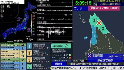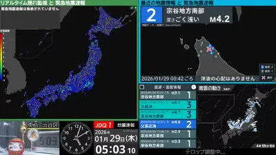 【最速】地震速報ライブ【自動読み上げ】<緊急地震速報・地震情報・津波情報・雨雲レーダー>
