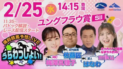 【ユングフラウ賞】2026年2月25日(水)浦和競馬予想LIVE「うらわっしょい!」11時35分パドック解説スタート・14時15分出演者登場!