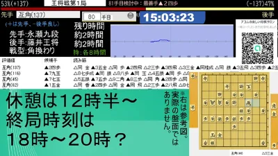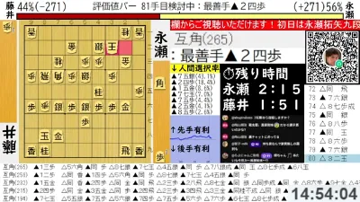 藤井聡太王将ー永瀬拓矢九段 ALSOK杯第75期王将戦第1局 アユムの評価値放送
