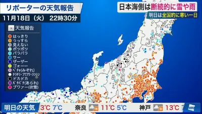 【ライブ】最新天気ニュース・地震情報 2025年11月18日(火) /冬型強まり大雪や吹雪に警戒 青森・酸ケ湯で最早の積雪1m到達〈ウェザーニュースLiVEムーン・駒木結衣/宇野沢達也〉