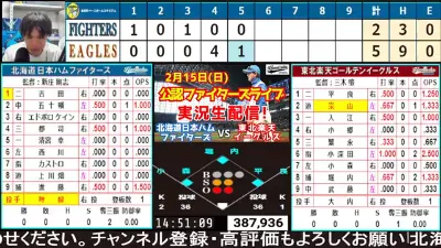 【ファイターズライブ】北海道日本ハムファイターズ対楽天イーグルス 2/15 【ラジオ調実況】