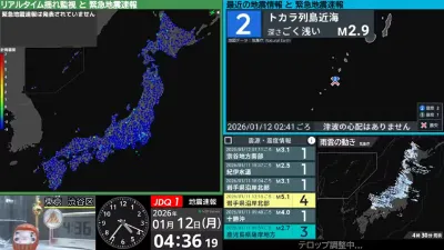 【最速】地震速報ライブ【自動読み上げ】<緊急地震速報・地震情報・津波情報・雨雲レーダー>