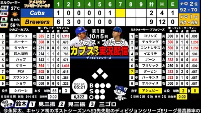 【鈴木誠也】カブス vs ブリュワーズ⚾地区シリーズLIVE 25/10/5
