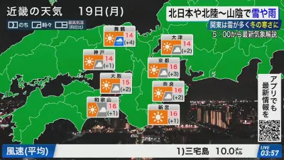 【ライブ】最新天気ニュース・地震情報 2026年1月19日(月) 1:00〜/〈ウェザーニュースLiVE〉