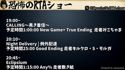恐怖のRTAショー「Eclipsium」!twitter !schedule !rtaij / Eclipsium